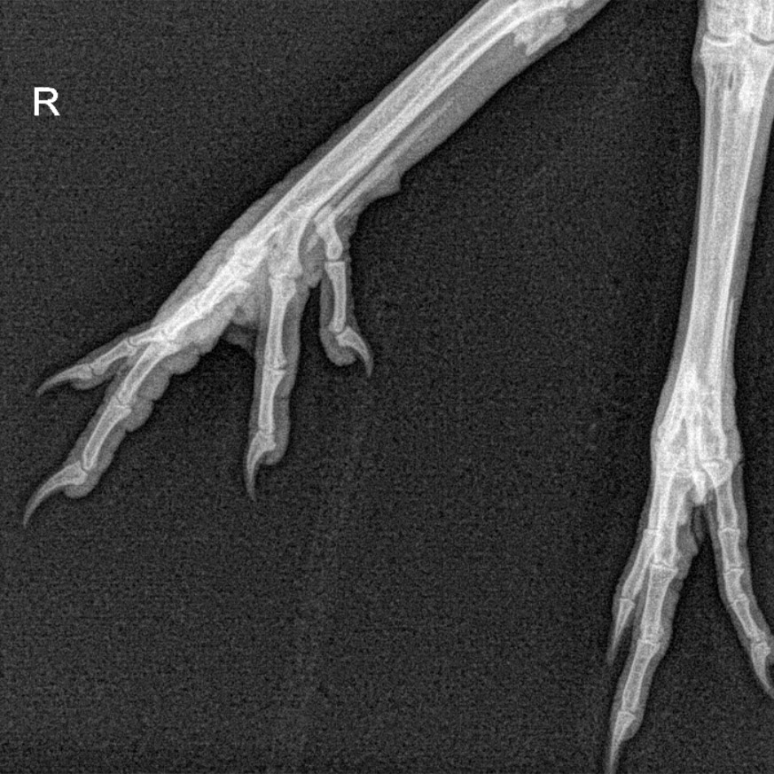 Just as Kelly took Checkers out of his travel cage, Dr. Strickland had entered the room. He inquired about Checker’s history, circumstances leading to his injury, and what initial treatment Kelly may have performed prior to bring him to the hospital. He performed a physical examination of Checker’s injured right foot, which had mild swelling of the Metatarsophalangeal joint.