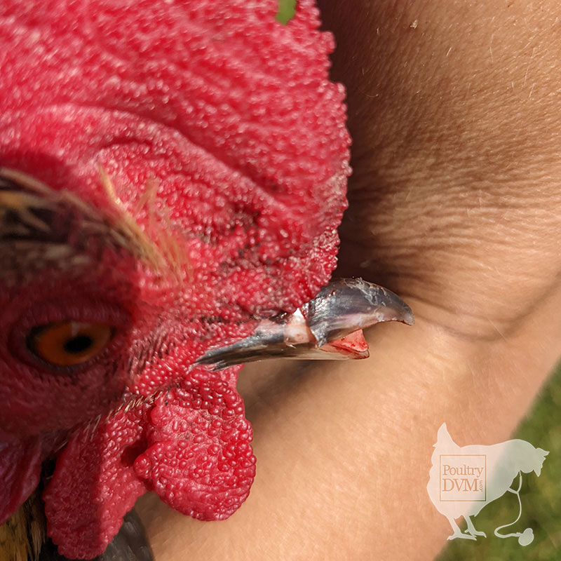 Beak injuries are common in backyard chickens, especially roosters. Injuries range from mild indentations in the beak wall to partial loss of the beak. Since the beak is lined with nerve endings, beak injuries are very painful.