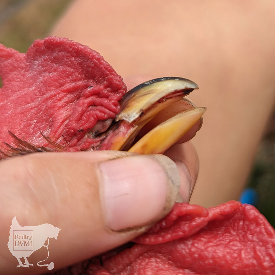Chickens can injure their beaks during fights with other flock members, getting the beak caught in hardware wire (especially 1/2" inch hardware cloth) or other small gaps, or from predator attacks.