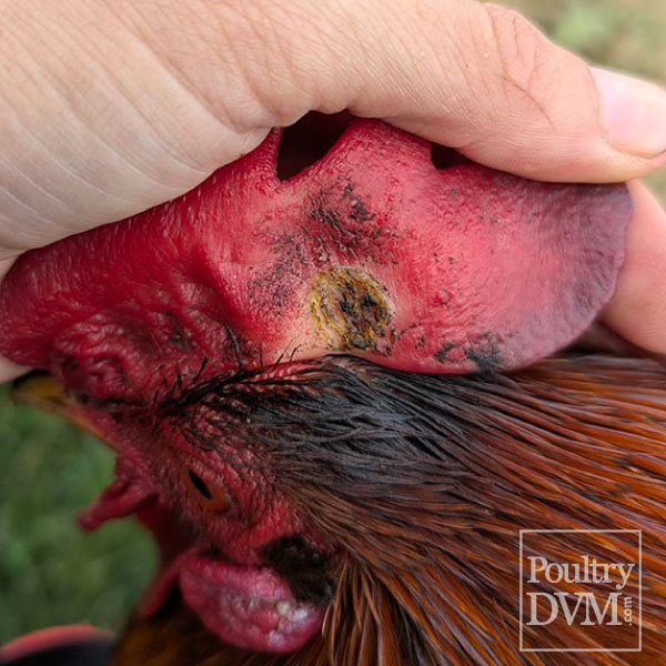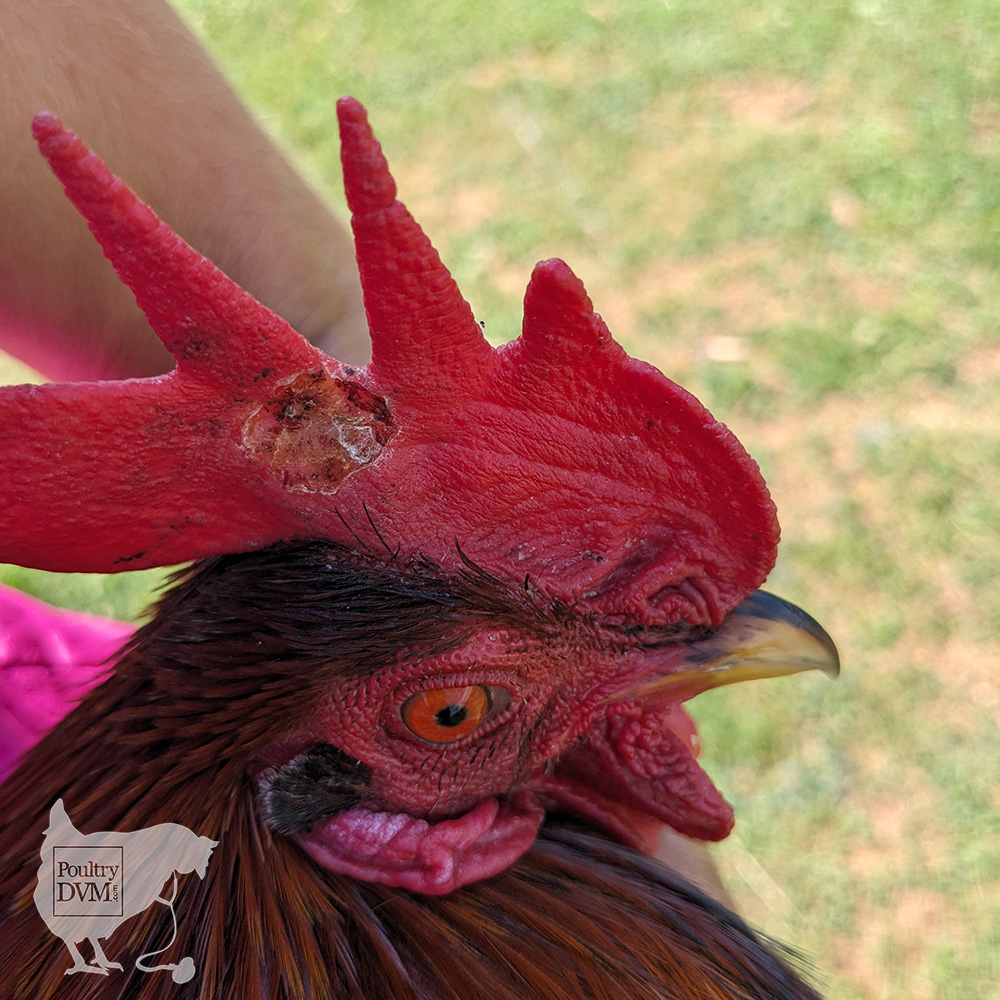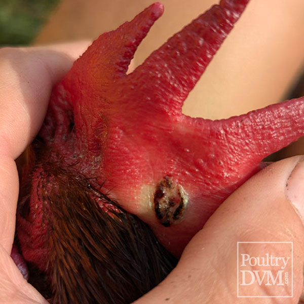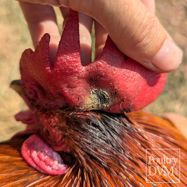 All chickens have a fleshy comb on the top of their head (although it various in size, color, and shape depending on the breed). It is an outgrowth from the dermal and epidermal layers of the skin of the head. The comb is vulnerable to invasion with several fungal pathogens resulting in primary infection. Secondary bacterial infections may also occur, resulting from frostbite, injury or trauma, and fowl pox lesions. Some of the most frequent comb infections reported in chickens include: